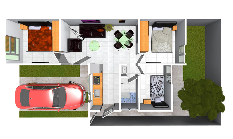 47 m2. Terreno de 6 x 15 m. Casa de block. Losas de cimentación. Losas de azotea de vigueta y bovedilla. Impermeabilización. Barda divisoria de 1.20 m.